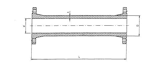 Délka L trubek přírubových TP je v řadě: 100, 150, 200, 250, 300, 350, 400, 500, 600 a 1000 mm.